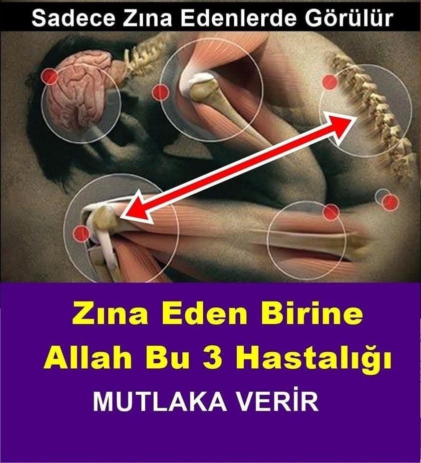 Maddi hastalık ve manevi hastalık vardır. Zına edenelrdein vücıudunda çeşitli sıkıntılar yaşanır. Görülen hastalıklar o kişide belirgin bir şekilde kendini gösterir. 1. Fhuş ve zina yuvalar yıkar Nikâh toplum hayatı için bir nimettir. Gayr-ı meşru birleşmeler aile kurumunu ortadan kaldırır. Aynı zamanda zina, kurulmuş olan ailenin dağılmasına ve perişan olmasına sebep olur. Geride faydasız pişmanlıklara gömülen, aldatmanın veya aldatılmanın verdiği acıyla yaşayan erkekler ve kadınlar, birbirinden kopmuş anne ve babanın ilgi ve şefkatinden yoksun büyüyen evlatlar kalır. 2. Dimağları tahrip eder Zinanın yaygın olarak bilinen fonksiyonu; genç dimağları tahrip etmesi, üretemez, düşünemez hale getirmesidir. Fuhuşla içli-dışlı olan nesillerin belden yukarısı çalışmaz. Bütün söz ve fiilleri belden aşağıya endekslidir. En verimli çağlarında beyinlerini boş, hatta zararlı işlerle meşgul ederler. 3. Kişiye vicdan azabı çektirir Şu itiraflar, içine girmiş olduğu günah bataklığından dolayı vicdan azabı duyan bir gence ait. Bakın ne diyor: “Lise-1’den bu yana bazen uygun olmayan sinemalara gidiyorum. Bu daha sonra bana inanılmaz acılar veriyor. Günlerce gülmeyi kendime yasaklıyorum. İnsanlardan hep kaçıyor, hafakanlar yaşıyorum. Kendimi etrafımdaki iyi insanlardan çok aşağı ve alçak görüyorum. Mutluluk değil birazcık huzura ihtiyacım var. Öylesine ikilemlerdeyim ki bir gün gelir, buna dayanamaz ve acı bir şekilde her şeyi bırakırım diye korkuyorum.” 4. İslami aşk ve heyecanı öldürür Zina dolayısıyla haramlara girme, zamanla kişinin kalbini işgal ede ede, “Onların yapageldikleri kötü işler, gitgide kalplerini paslandırmıştır” (Mutaffifin, 83/14) ayetinin sırrı zuhur eder. Kalp duymaz ve duygulanmaz hale gelir. Günahlar kalbi kararttıktan sonra bir insanda, İslamî aşk ve heyecan bulunması mümkün değildir. 5- Bu noktada işi ciddiye almayan: Kendini disipline etmeyen bir insanın kalbine her bakışında birer kara lekenin sürüldüğü unutulmamalı. Kalbin her gün yara alması kadar kişiyi takva konusunda zayıf düşürücü bir hal düşünülemez. Bu durumda yara alan kalbin direniş gücünün de zayıflayacağını ve daha önce hassasiyet gösterilen konularda (mesela namazı dosdoğru kılma konusunda) da gerileme içine gireceğini söyleyebiliriz. Çünkü bunların hepsi birbirine bağlıdır. 6- Unutkanlık verir: Zina yapanlarda daha çok görülür. Cinselliğin yanlış kullanımı ve karşı cinse bakma insanın hafızasını, dikkatini tahrip eder. Hafıza uzmanları günümüzde unutkanlığın ve hafıza zayıflığının artmasını yirminci yüzyılın bir hediyesi olarak dile getiriyorlar. Onlara göre beynin çalışma akışının bloke edilmesi, fazla televizyon seyretme, kontrolsüz hayaller kurma gibi şeylerden dolayı beyin kapasitesinin zayıflatılması ve sistemsiz düşünme alışkanlığı gibi etkenler insanlarda unutkanlığa sebep oluyor. 7- Sektör haline gelmesi kapanmaz yaralar açar: Fuhşun topluma getirdiği zararlardan biri de fuhuş için oluşturulan mekânlardır. Artan dejenerasyonla doğru orantılı olarak fuhuş mekânları da artmakta, bu da toplumun ahlaki çöküşünü hızlandırmaktadır. Çocuk denilecek yaştaki insanlar buraları doldurmakta, aile bağları zedelenmekte, bu yüzden sadakatsizlik ve vefasızlık sürekli artmaktadır. 8- Kürtajları arttırır: Fuhuş neticesinde istenmeden de olsa kadınlarda hamile kalmalar oluyor. Tabi doğal olarak hiç kimse babasız bir çocuğu büyütüp beslemek istemiyor. Dolayısıyla ortaya kürtaj meselesi çıkıyor. 9- İnsan sağlığını tehdit: eder Gayr-ı meşru beraberlikler, insanın sağlığı için de zararlıdır. Pek çok zührevi hastalıkların kaynağının zina olduğu tıbben sabit olmuştur. Hatta bugün insan sağlığını tehdit eden AİDS hastalığı da çoğunlukla üreme organları yoluyla bulaşmaktadır. Zinanın yaygın hale geldiği toplumlarda ölüm olaylarının çoğalacağını haber veren Peygamberimiz, bu noktaya dikkatimizi çekmiştir. (Et-Tergib ve’t-Terhib, 3/286)Vitamin ve takviye satın alın 10- Allah’ın gazabını çeker: Zina büyük günahlardandır. Rabbimiz yapılmaması üzerinde ısrarla duruyor. Kur’an-ı Kerim’deki ayetlerden öğrendiğimize göre bu fiili yaygın bir şekilde yapan kavimleri Cenab-ı Hak helak ediyor. Yani her zina, Rabbimizin azabına bir davetiye hükmüne geçiyor. O yüzden zinanın her türlüsünü terk etmek bir kulluk vazifesidir. Örnek, Ad kavmi, Sodom-Gomore, Pompei şehri. 11- Kadınları mağdur eder: Maalesef toplumumuzda yerleşen yanlış bir kanaat var. Zinayı erkek yaptığında normal, kadın yapınca anormal kabul ediliyor. Öncelikle şunu söyleyelim. Zina yapan kadın nasıl ki zaniye oluyorsa erkek de zani oluyor. Aralarında hiçbir fark yoktur. Zina yapan bir kişide bu hastalıklar o kişide mutlaka görülür. Bunlardan 3’ü dünyada, 3’ü de ahirette gelir… Dünyada başına gelir 1- Yüzünün nuru gider. Yüzünden nerdeyse anlaşılacak hale gelir. Allah’ın verdiği o güzellik ve nur artık görünmez olur 2- Fakirlik getirir. Geçimini bozar, huzurunu bozar, ömrünün bereketini giderir. Dünyadan nasıl gittiğinin farkında bile omazsın. 3- Allah’ın rahmeti ,şefaati gider. Rabbimiz lanetlediği için ömrü kısalır, yani bereketsiz hale gelir. Ahirette başına gelecekler; 1- Direk Allah’ın gazabı ile karşılaşır. Kabirden kalkıp mahşer meydanına giderken Allah’ın gazabı ile karşılaşır. 2- Cehennemde de kalmayı gerektirir. Cehennemde büyük azaplara düçar olur . (İbnu’l Cevzi) 3- Kötü bir şekilde hesaba çekilir. Ahiretin o çetin gününde yaptığı bu günahın cezasının hesabı çok çetin sorulur. Haram ilişkiler meleklerin lanetine sebeptir Her sabah iki m